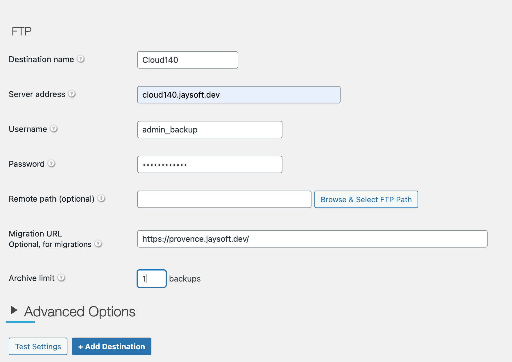 2. Cài đặt FTP để khi backup xong sẽ send về FTP tự động