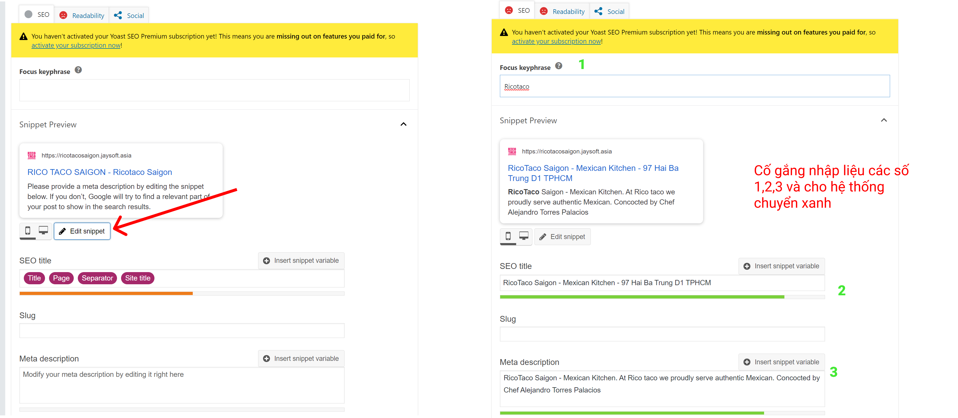 Xóa dòng title mặc định của SEO và nhập title mình cần set vào đây