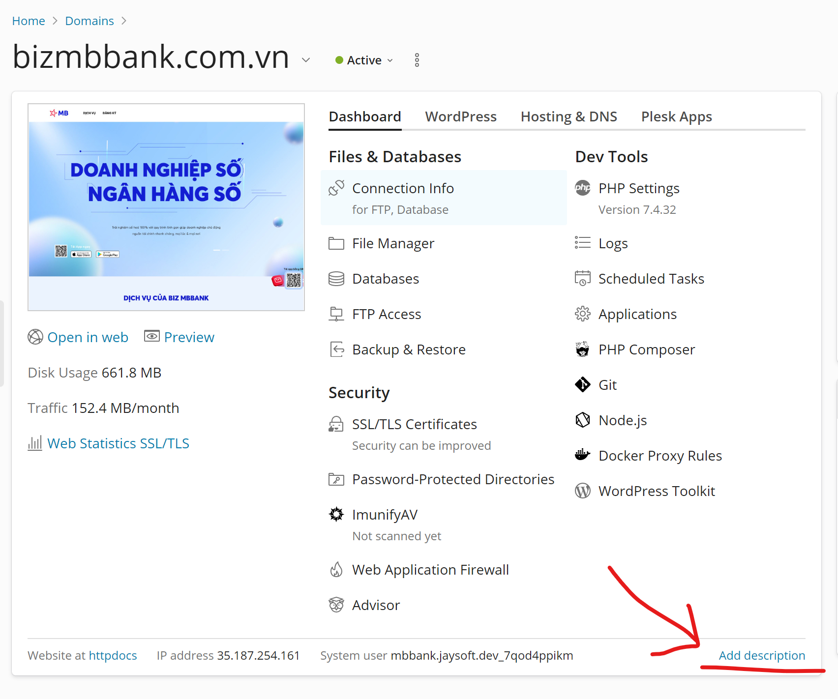 Bấm vào biểu tượng ổ khóa có chữ SSL, và chọn "Install a free basic certificate provided by Let's Encrypt" ở cuối trang.