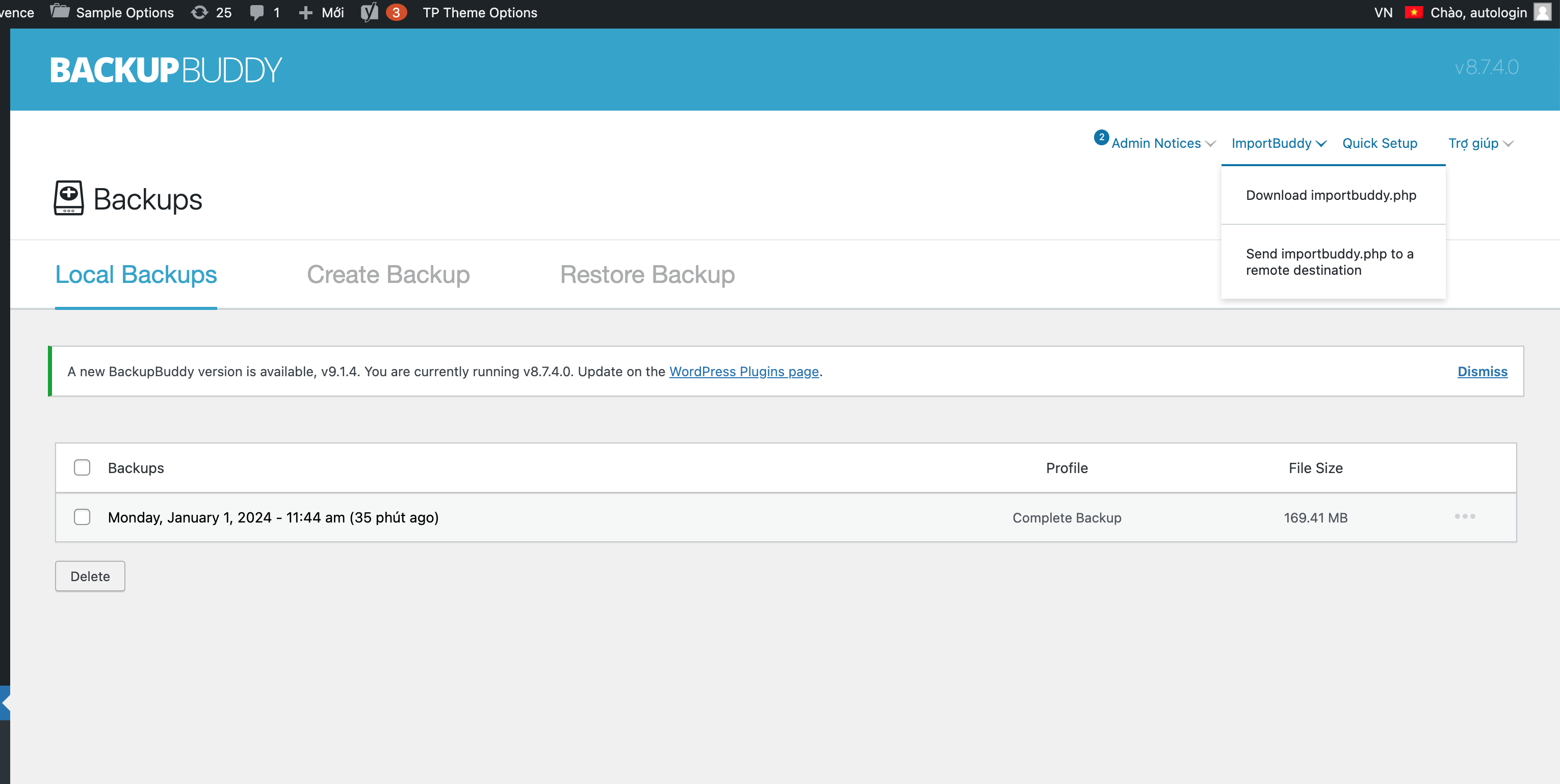 1. Download về file importbuddy.php mặc định của backup buddy